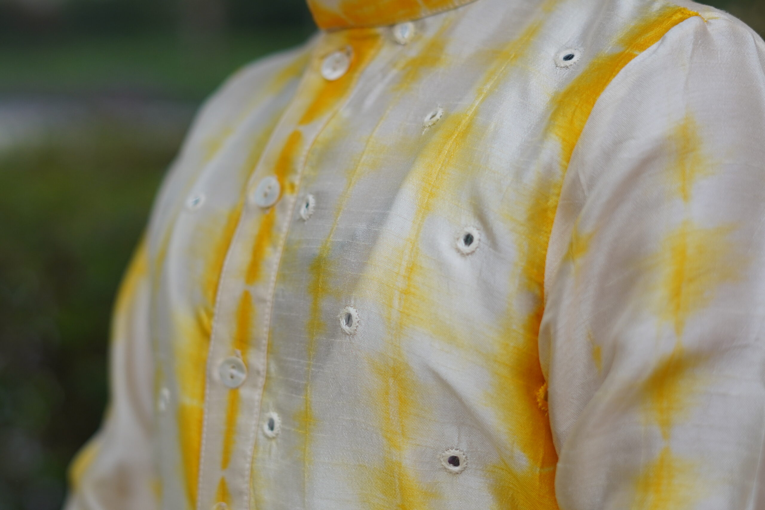 Yellow Shibori Cotton Silk Kurta Set.